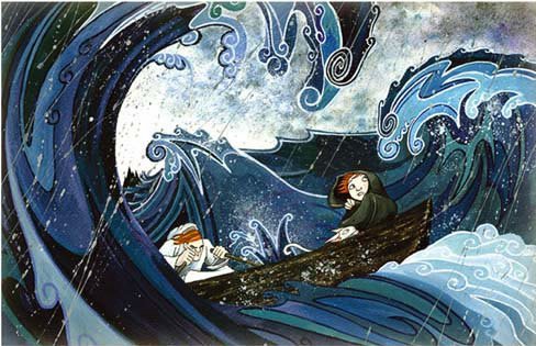 Quizá sea, la fusión de ambos mundos (lo pagano y lo religioso, lo místico y lo legendario) en un solo corpus argumental uno de los más significativos logros de los que puede presumir la película. El otro es hacer (que no pretender hacer, es importante el matiz: estamos en presencia de una película solo ambiciosa en sus formas) de cada uno de sus planos una obra artística de carácter incomparable. El Secreto de los Kells se vertebra, pues, sobre una base fantástica, a medio camino entre la devoción mí(s)tica y la fusión de varias leyendas irlandesas; no va a ser Aisling, entonces, la única referencia a la mitología Celta en un bosque colmado de misterio y de recovecos oscuros, incluido un averno que, entre penumbras, gobierna una deidad precristiana que los habitantes del bosque denominan Crom Cruach, un ser ofidioforme que, transfigurado como una enorme bestia bidimensional, pugnará con Brendan tratando de evitar que el joven monje pueda acceder a un cristal mágico capaz de hacerle vislumbrar el modo que le permita trazar y, finalmente, concluir el monograma de la Encarnación, una de las páginas más complejas de todas y cuantas conforman el libro, en una de las secuencias más vibrantes de una película que, pese a todo, alcanza su (furioso) cenit en la narración del cruento ataque vikingo a la Abadía de Kells, repleto de formas hiperbólicas, pretendidamente expresionistas, de antorchas humeantes que se yerguen al cielo, de espadas firmes que apenas si encuentran resistencia al otro lado del contrafuerte, de nieve que se convierte en fuego, y de escaleras que se derrumban hacia el abismo dejando a su paso muerte, destrucción, gerifaltes heridos y aprendices de monjes sin hogar, dando pie a un viaje iniciático en el que se embarca el menor de sus protagonistas en defensa de un libro, el de Kells, cuyo interior todavía guarda un tesoro que el curso de la historia le encargará proteger a toda costa.