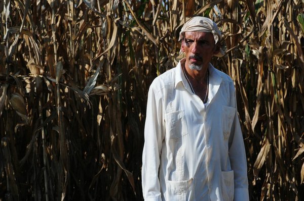 Pero antes que carne que es capaz de engendrar más carne, lo que va haciendo acto de presencia en el relato es la materia muerta, lo cárnico en proceso de descomposición. Y, paulatinamente, a lo largo de la primera media hora del filme Moreno, que sitúa su trabajo en un domingo de elecciones en un pueblo fronterizo de Colombia, nos enseña en los márgenes de los planos la putrefacción: ya sea por la el zumbido de los mosquitos y moscas o por la imagen de carne de animales en una carnicería, la podredumbre va ocupando espacio poco a poco hasta que aparece en (casi) toda su evidencia cuando Salvador va a trabajar al maizal y se encuentra con una montaña de cadáveres en sus tierras. Moreno nos lo muestra en un travelling subjetivo mediante el cual el espectador queda acongojado al mismo tiempo que el protagonista, para finalmente acabar esa toma en un cuadro aéreo que casi reclama una respuesta al cielo sobre el motivo de ese inexplicable acontecimiento.