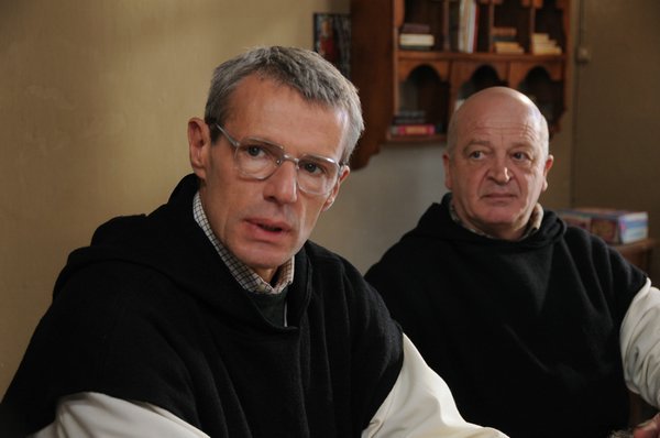 A sus protagonistas no los describe como ermitaños enclaustrados en una torre de marfil. Mientras documenta la vida comunitaria de esta congregación religiosa al hilo de oraciones, cánticos, faenas cotidianas y respetuoso silencio, también desnuda la faceta humanitaria y la dimensión social de este monasterio trapense. Consagrados a la posibilidad de ofrecer consuelo sanitario y otras necesidades básicas al desapacible mundo externo que los envuelve, tampoco dudan a la hora de integrarse en las festivas costumbres locales, estudiar con absoluta deferencia los textos coránicos o aconsejar con benevolencia y sabiduría sobre los designios del amor. Armonía que comienza a desmoronarse tras los estremecedores crímenes de sangre perpretados en la región por los más obtusos militantes del fundamentalismo islámico. Lo que hasta ahora había sido un remanso de paz y transigencia mutua adquiere lentamente a lo largo del metraje un cariz de tensión progresiva que avanza hacia un desenlace, que no por presumible resulta menos palpitante.