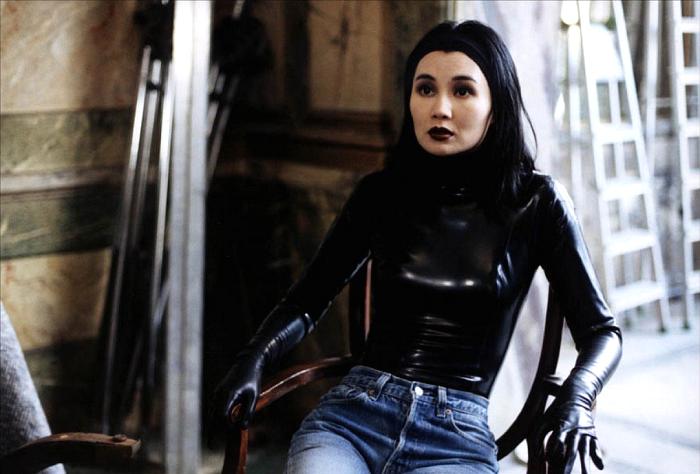 Irma Vep parte da un paso más allá de Van Sant y Haneke: en lugar de calcar plano a plano la inenarrable historia de “Les Vampires”, decide contar la historia de un director cuya intención es exactamente esa. Asi pues, asistimos a una mezcla entre making of e historia de ficción paralela al rodaje de una cinta que, no sólo tiene la desfachatez de querer igualarse al serial de Feuillade, si no que pretende hacerlo sin adaptarla en ningún sentido. A partir de esa curiosa premisa, Olivier Assayas construye una de las reflexiones más crudas sobre el cine dentro del cine, escupiendo a la propia industria de su país desde distintos ángulos. El gran acierto de Irma Vep es reirse a distintos niveles con detalles que pasan desapercibidos para el espectador menos documentado: así pues, el director encargado de llevar a cabo tamaña odisea está interpretado por todo un símbolo del cine francés, Jean-Pierre Léaud, aquel niño de Los Cuatrocientos Golpes y el protagonista de Domicilio Conyugal (François Truffaut, 1959 y 1970 respectivamente), mientras que el papel protagonista pasa de la muy francesa Musidora a la hongkonesa Maggie Cheung, interpretándose a sí misma. El mejor cruce entre estos personajes es el momento en el que descubrimos porqué el director le ofrece el papel protagonista a una mujer asiática, y, para ello, nos ejemplifica el talento de la actriz con escenas de Trío Heróico (Johnny To, 1993), comparando conscientemente los seriales franceses de principios de siglo con el cine hongkonés a rebufo de John Woo. La crítica se dispara de lo sutil a la brocha gorda cuando un reportero entra en acción para decir, sin pelos en la lengua, y desde una película francesa, que el cine francés es ombliguista y carece en su mayoría del mínimo valor más allá del onanismo de sus autores.