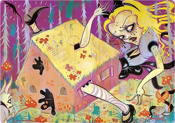 Este revival visual del cuento predilecto de los psiconautas captura las aventuras surrealistas de la joven Alicia, los encuentros con el Sombrerero Loco, la adormilada oruga azul que fuma pipa, las conversaciones pseudofilosóficas del gato Cheshire o los enfrentamientos con la malvada Reina de Corazones, para trasladar al espectador a mundos oníricos y mágicos que distan mucho de la visión victoriana de John Tenniel. “El ilustrador inglés siempre estuvo entre mis favoritos, y aunque quise permanecer fiel a su trazo he aportado un toque gótico y contemporáneo”, declaró la artista en el diario Los Angeles Times. Admitiendo, también, que adora Disney porque “difumina la barrera entre lo imaginario y lo real”.